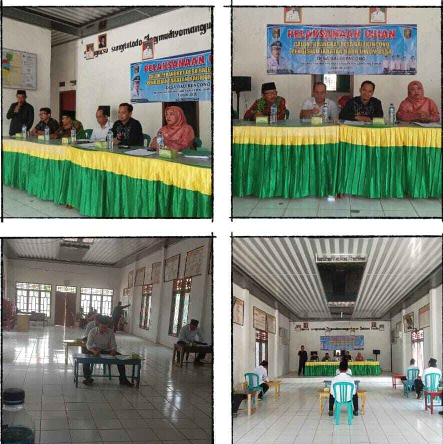 Balekencono, Lampung Timur — Panitia Penjaringan dan Penyaringan Perangkat Desa Balekencono, Kecamatan Batanghari, menyelenggarakan seleksi calon perangkat desa pada Minggu (14/9/2025). Bertempat di Balai Desa Balekencono, kegiatan dimulai sejak pukul 08.00 WIB dan berlangsung tertib hingga selesai.