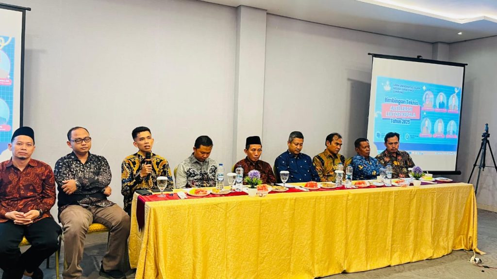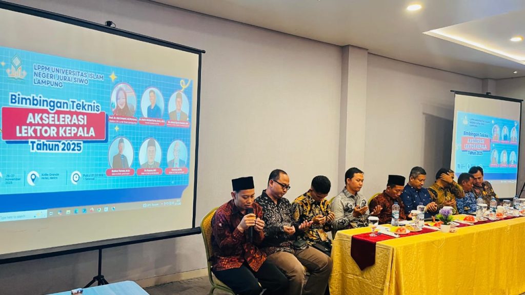 Metro — Setelah berlangsung selama dua hari, kegiatan Bimbingan Teknis (Bimtek) Akselerasi Lektor Kepala yang diselenggarakan oleh Lembaga Penelitian dan Pengabdian kepada Masyarakat (LPPM) UIN Jurai Siwo Lampung resmi ditutup pada Rabu, 27 November 2025, di Ballroom Aidia Grande. Kegiatan ini sebelumnya dibuka pada 26 November 2025 dan menghadirkan Dekan, Wakil Rektor II, para narasumber, serta para dosen peserta bimtek dari berbagai fakultas.